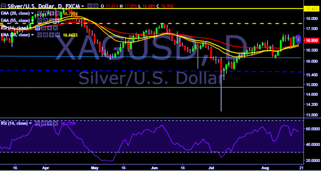 - XAG/USD is currently trading around $16.93 marks.
