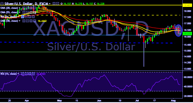 We prefer to go short on XAG/USD around $16.28 with stop loss at $16.42 and target of $15.92.