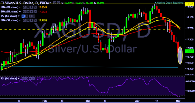We prefer to go short on XAG/USD around $16.92 with stop loss at $17.24 and target of $16.43/$16.26.