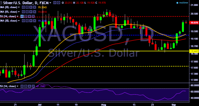 We prefer to go long on XAG/USD around $19.95 with stop loss at $19.72 and target of $20.22/$20.46.