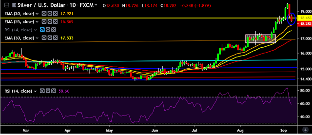 - XAG/USD is currently trading around $18.26 marks.