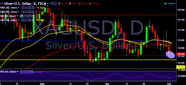 We prefer to go short on XAG/USD around $18.83 with stop loss at $19.01 and target of $18.46/$18.17.