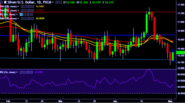 We prefer to take short position in XAG/USD only below $16.26, stop loss $16.32 and target of $16.02.