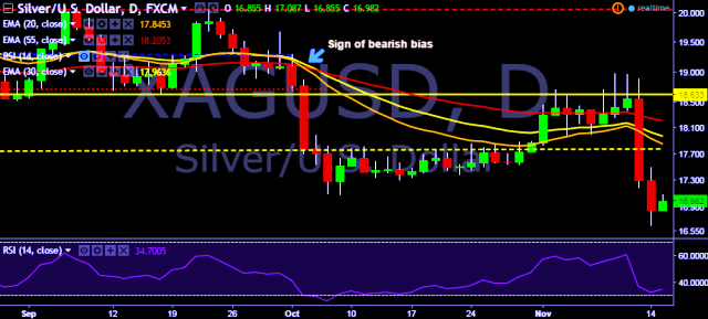 We prefer to go short on XAG/USD only below $16.85 with stop loss at $17.22 and target of $16.60/$16.33.