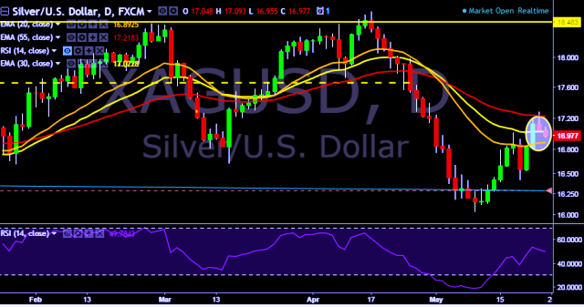 We prefer to go short on XAG/USD around $17.00 with stop loss at $17.28 and target of $16.58.