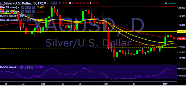 - XAG/USD is currently trading around $18.24 marks.