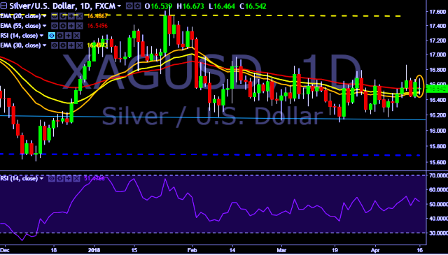 We prefer to take short position in XAG/USD around $16.57, stop loss $16.72 and target of $16.40.