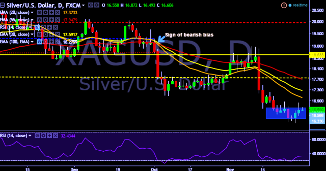 We prefer to take short position in XAG/USD around $16.60, stop loss at $16.87 and target of $16.27/$16.11.