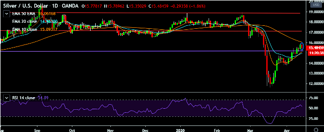 - XAG/USD is currently trading around $15.44 marks.