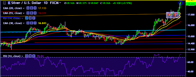 - XAG/USD is currently trading around $18.24 marks.