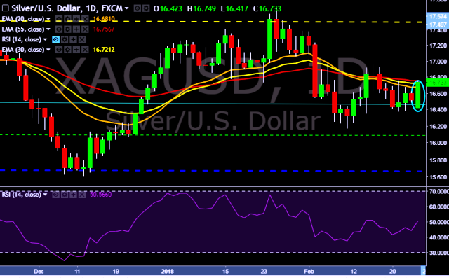 - XAG/USD is currently trading around $16.72 marks.
