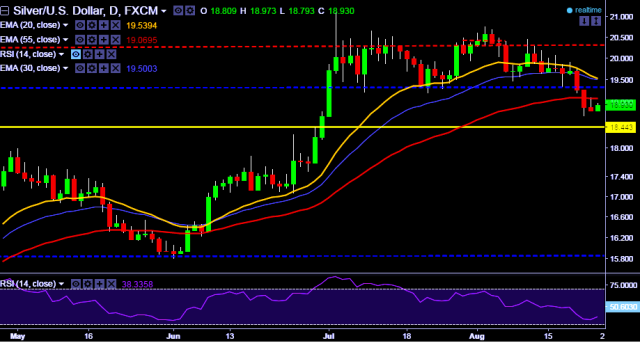 - XAG/USD is currently trading around $18.95 marks.