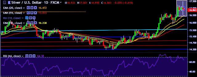 - Intraday bias remains bearish till the time pair holds key resistance at $17.02 mark.