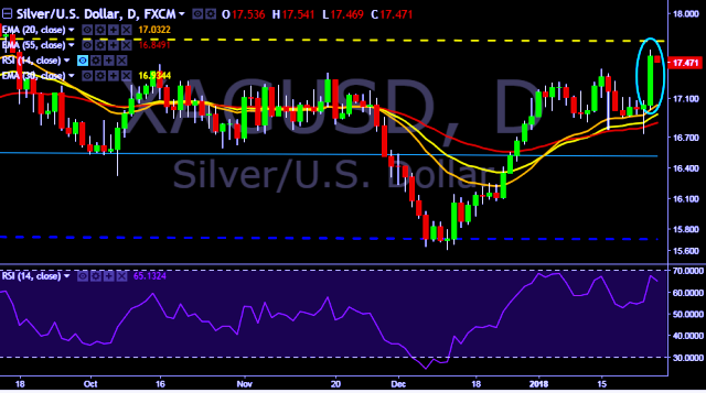 We prefer to take long position in XAG/USD around $17.42, stop loss $17.32 and target of $17.62/$17.90 mark.