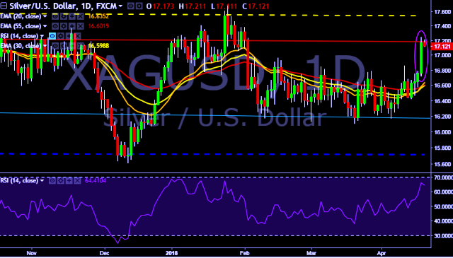 We prefer to take long position in XAG/USD around $17.10, stop loss $16.96 and target of $17.40/$17.52.