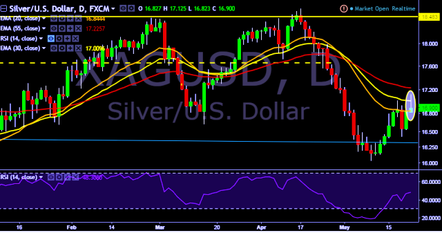 We prefer to go long on XAG/USD around $16.87 with stop loss at $16.52 and target of $17.12/$17.24.