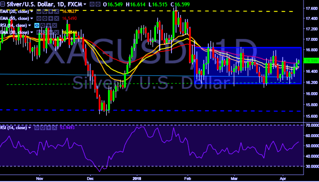 We prefer to take long position in XAG/USD only above $16.62, stop loss $16.50 and target of $16.72.