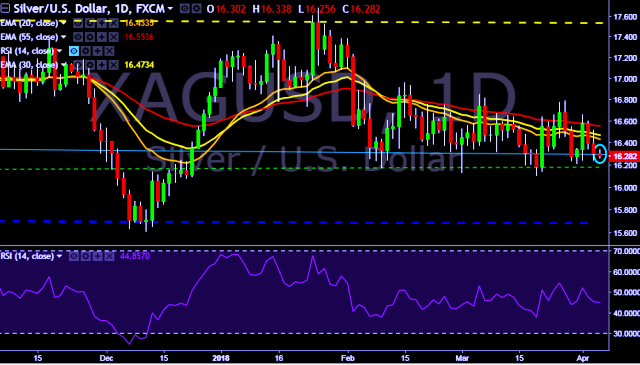 We prefer to take long position in XAG/USD around $16.26, stop loss $16.19 and target of $16.38/$16.55.