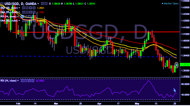 We prefer to take long position in USD/SGD around 1.3865, stop loss 1.3918 and target of 1.3820.
