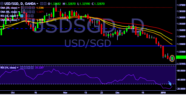 We prefer to take long position in USD/SGD around 1.3278, stop loss 1.3355 and target of 1.3375.