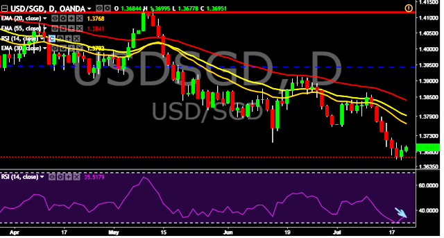 - USD/SGD is currently trading around 1.3693 marks.