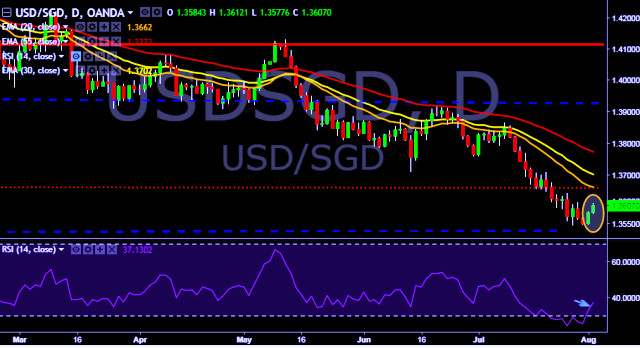 We prefer to take long position in USD/SGD around 1.3600, stop loss at 1.3545 and target of 1.3676.