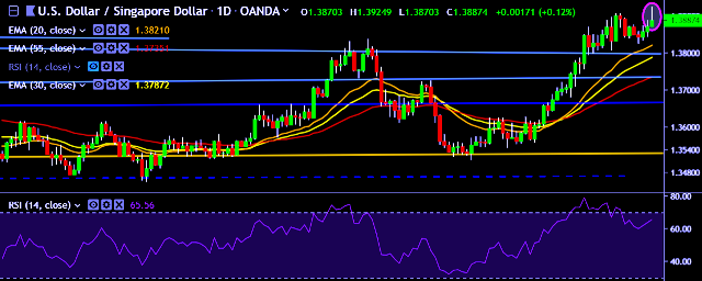 We prefer to take long position on USD/SGD around 1.3875, stop loss at 1.3832 and target of 1.3945/1.3984.