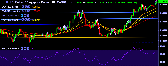 - USD/SGD is currently trading around 1.3937 marks.