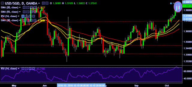 - USD/SGD is currently trading around 1.3845 marks.