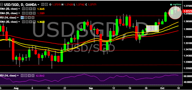 We prefer to go short on USD/SGD only below 1.3704 with stop loss at 1.3760 and target of 1.3646/1.3587.