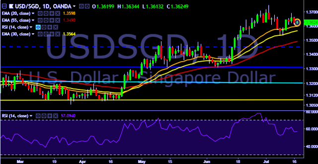 We prefer to take long position on USD/SGD around 1.3600, stop loss at 1.3568 and target of 1.3690.