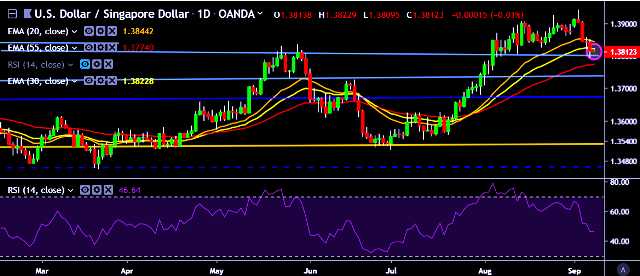 - USD/SGD is currently trading around 1.3812 marks.