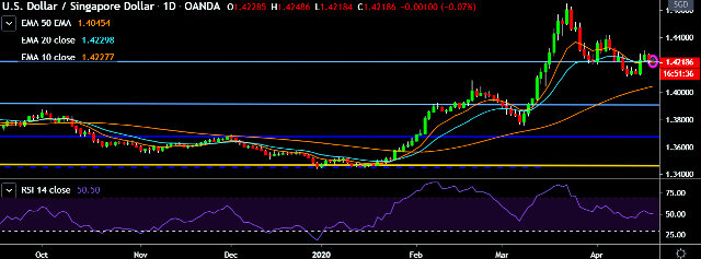 - USD/SGD is currently trading around 1.4214 marks.