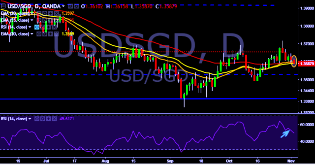 We prefer to take short position on USD/SGD around 1.3595, stop loss at 1.3643 and target of 1.3510.