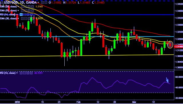 We prefer to take short position on USD/SGD around 1.3155, stop loss at 1.3202 and target of 1.3005.