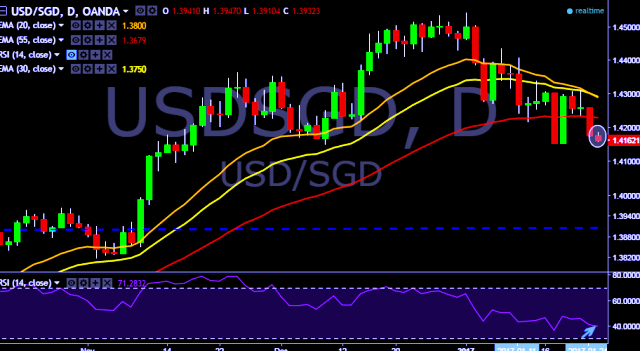 We prefer to take short position in USD/SGD around 1.4170, stop loss 1.4260 and target of 1.4110/1.4046.