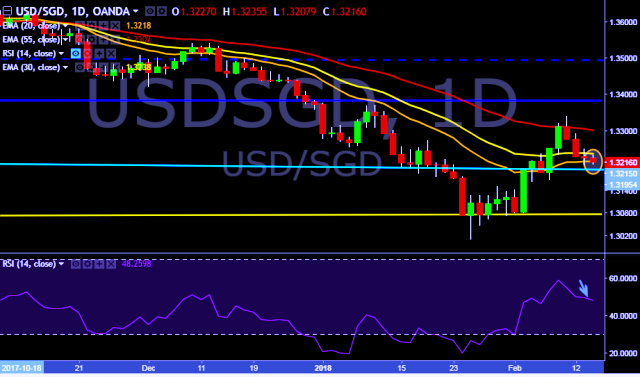 We prefer to take short position on USD/SGD around 1.3218, stop loss at 1.3250 and target of 1.3080.
