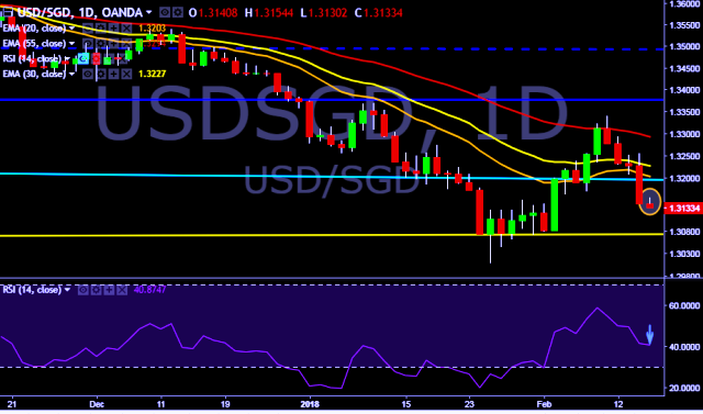 We prefer to take short position on USD/SGD around 1.3140, stop loss at 1.3220 and target of 1.3080.