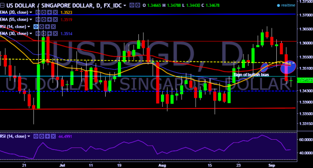 We prefer to go short on USD/SGD around 1.3475 with stop loss at 1.3530 and target of 1.3391/1.3347.