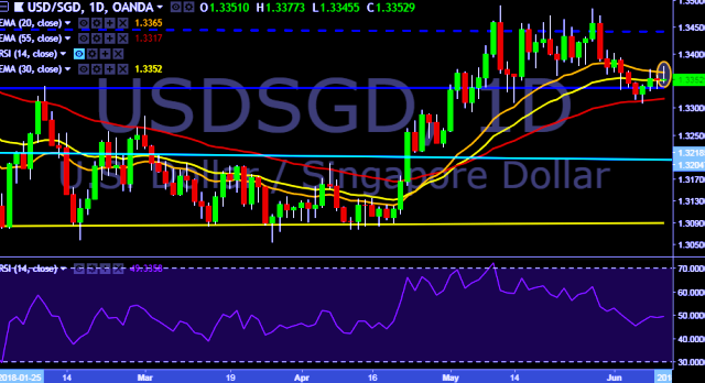 We prefer to take short position on USD/SGD around 1.3355, stop loss 1.3390 and target of 1.3307/1.3255.