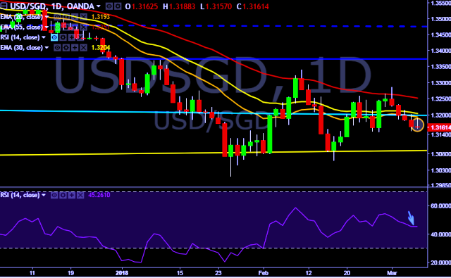 We prefer to take short position on USD/SGD only below 1.3147, stop loss at 1.3232 and target of 1.3090/1.3005.