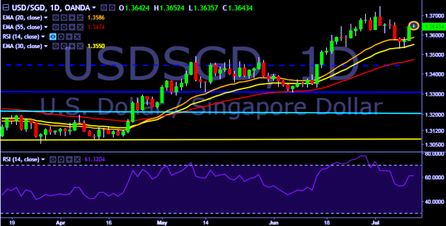 We prefer to take long position on USD/SGD around 1.3620, stop loss at 1.3570 and target of 1.3692/1.3714.
