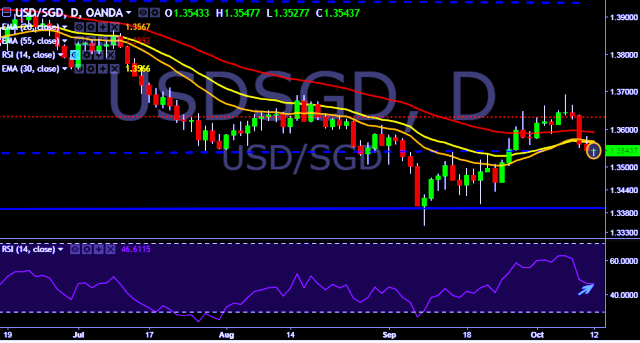 We prefer to take short position in USD/SGD around 1.3545, stop loss 1.3580 and target of 1.3502.