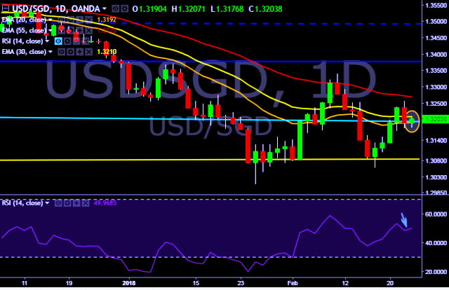 We prefer to take short position on USD/SGD only below 1.3150, stop loss at 1.3257 and target of 1.3090.