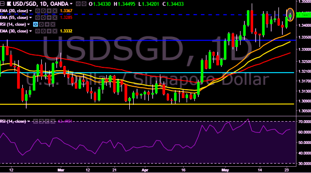 We prefer to take short position on USD/SGD around 1.3450, stop loss 1.3490 and target of 1.3390/1.3350.