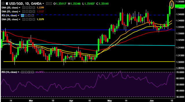 We prefer to take long position on USD/SGD around 1.3510, stop loss 1.3470 and target of 1.3587.
