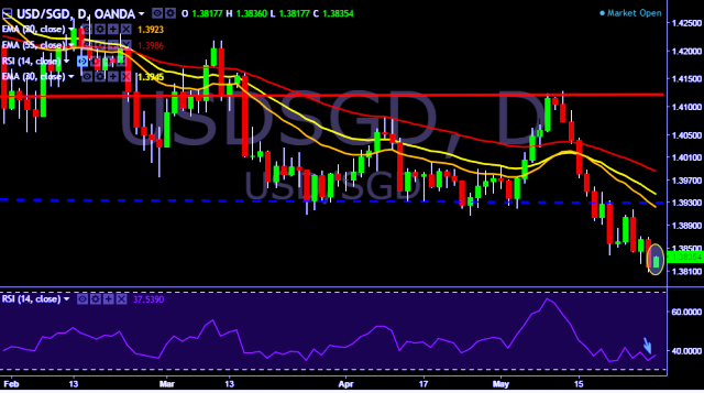 We prefer to take short position in USD/SGD only below 1.3817, stop loss 1.3869 and target of 1.3704.