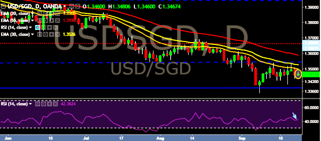 We prefer to take short position in USD/SGD only below 1.3460, stop loss 1.3505 and target of 1.3401/1.3346.