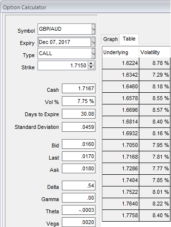 The execution: Initiate long in GBPAUD 2M at the money -0.49 delta put, long 2M at the money +0.51 delta call and simultaneously, short theta in 2w (1%) out of the money call with positive theta or closer to zero.Theta is positive; time decay is bad for a buyer, but good for an option writer.