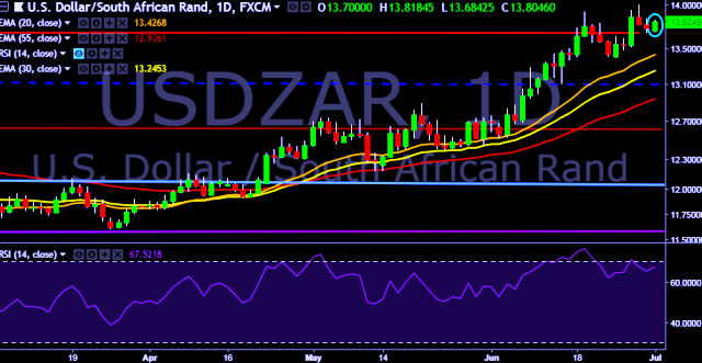 We prefer to take long position on USD/ZAR only above 13.84, stop loss 13.67 and target of 13.99/14.12.